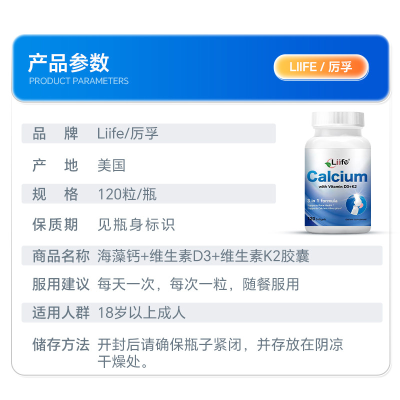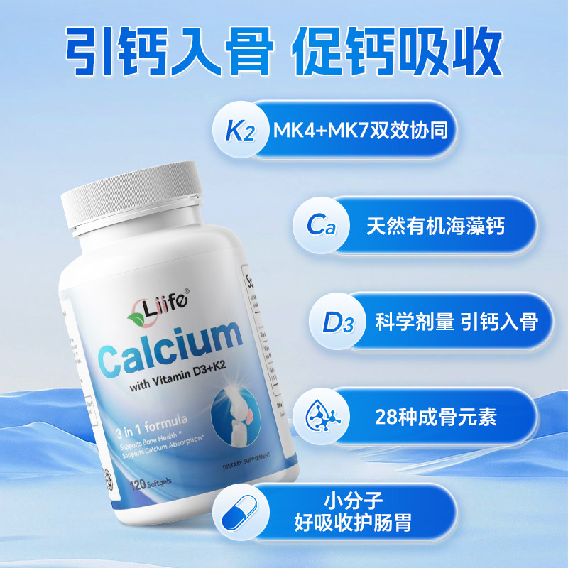 📚 美国厉孚Liife有机海藻钙维生素D3K2胶囊补钙入骨骼健康促钙吸收