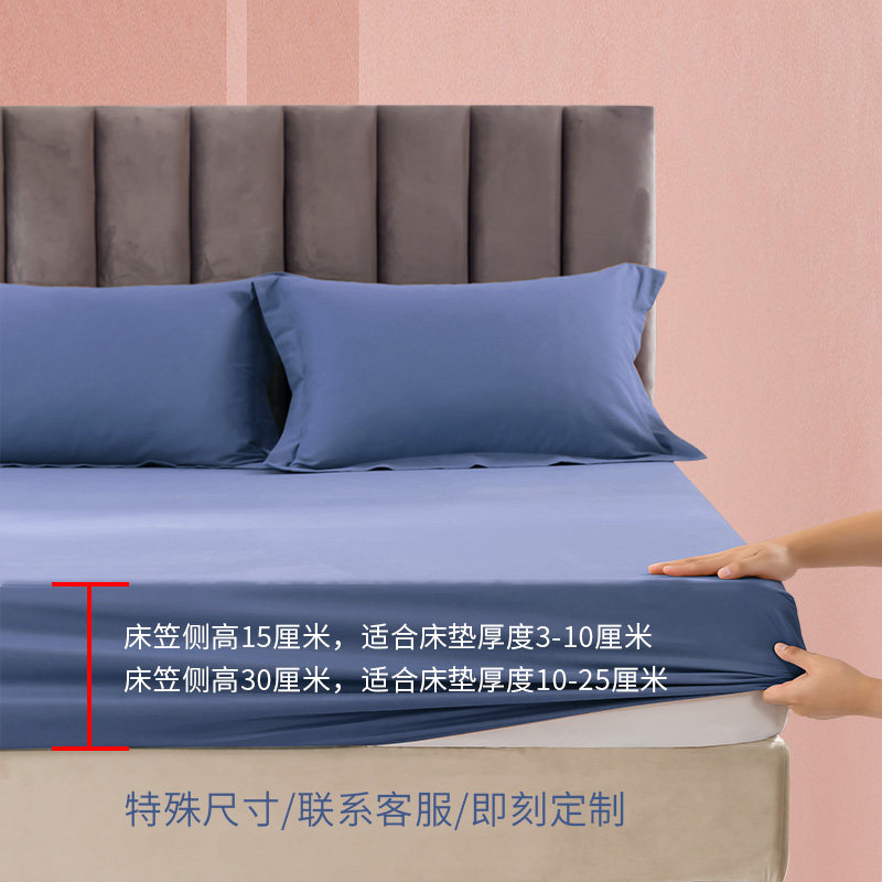📚 A类纯棉床笠单件床罩全棉1.8m米蓝灰色150x190席梦思床垫套罩定制