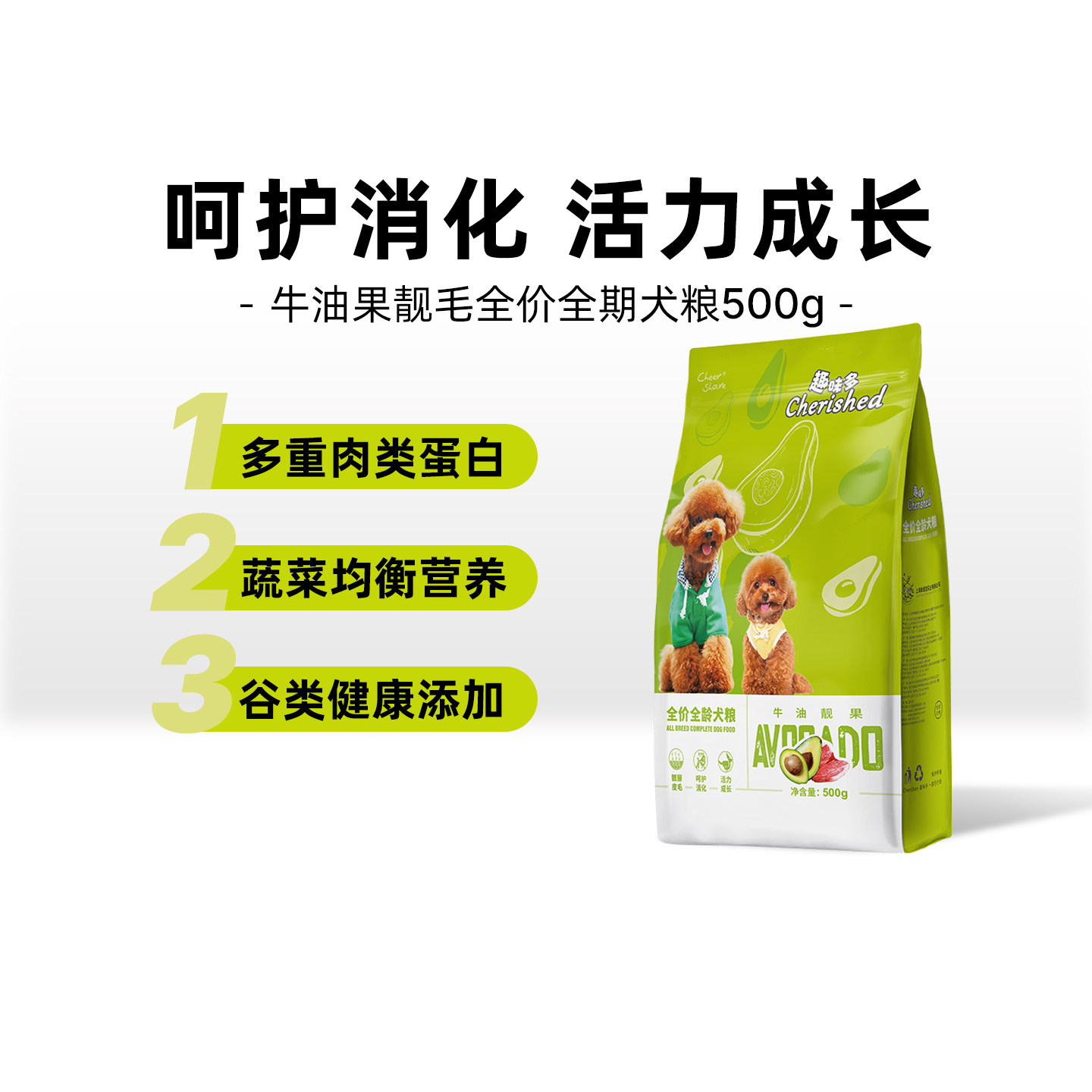 📚 趣味多狗粮牛油果靓丽被毛犬粮易消化成幼犬试用试吃装500g一斤装
