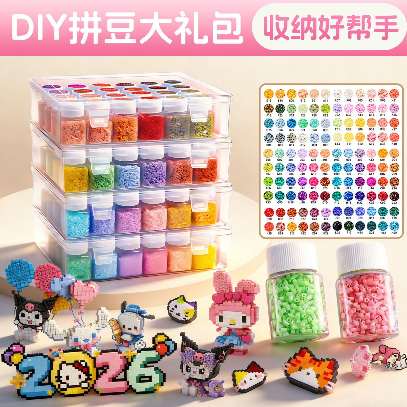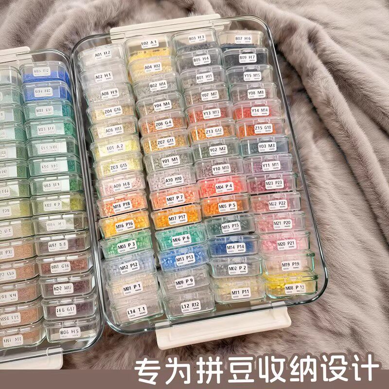 📚 分装拼豆专用收纳盒工具大容量透明拼豆瓶融合豆色号贴纸全套装斗
