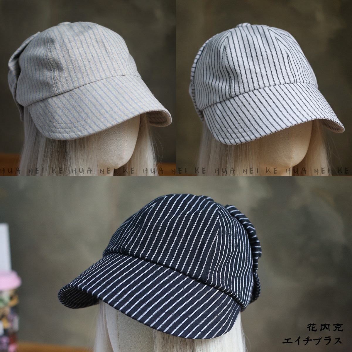 📚 出口日韩~早春日系复古条纹蝴蝶结鸭舌帽女百搭显脸小遮阳帽029