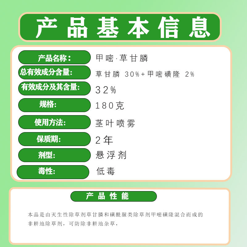 📚 32%甲嘧磺隆草甘膦甲嘧磺隆灌木杂树烂根强效非耕地杂草除草剂