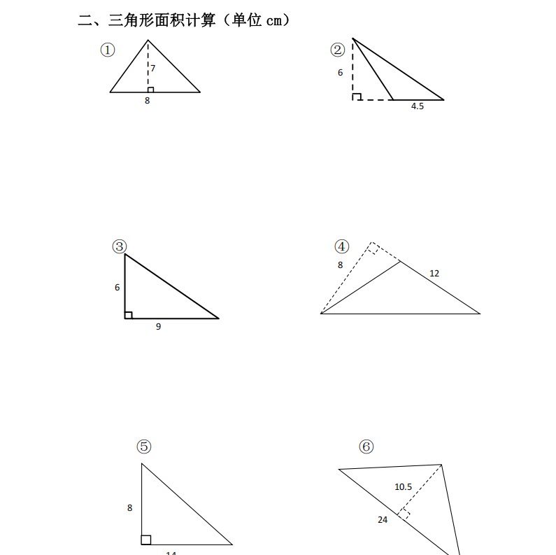 这款作业本涵盖了平行四边形、梯形和三角形的面积计算,特别针对小学五年级的学生设计。题目类型多样,既有基础练习题,也有拓展题,非常适合孩子们进行自我练习和巩固。