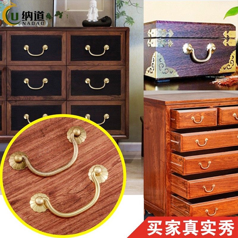 📚 中式木箱五金全铜拉手仿古双孔厨柜抽屉把手五斗柜古铜色明装提手