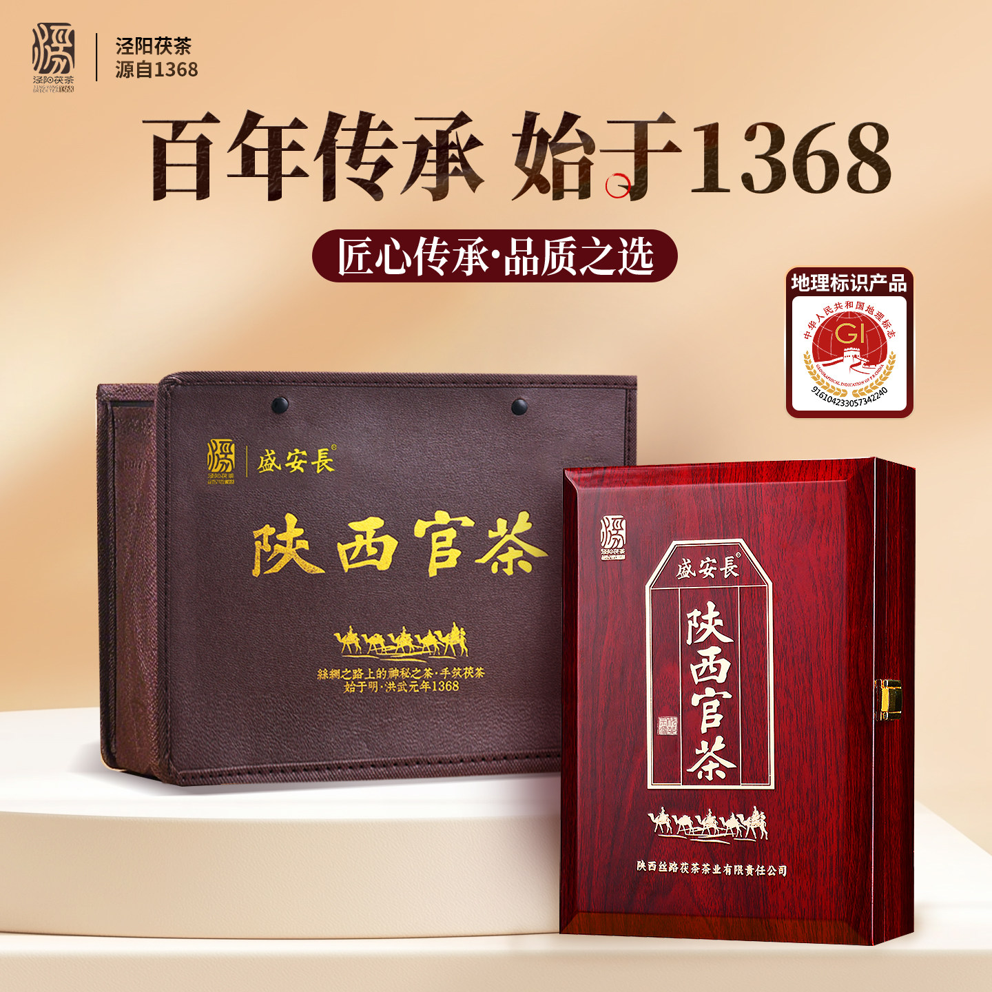 📚 【非遗技艺】特一级泾阳茯茶红木礼盒 黑茶金花茯茶砖茶西安特产