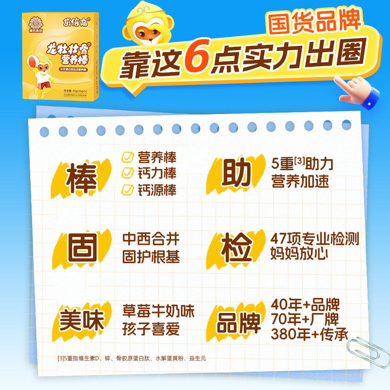 📚 龙牡壮骨营养棒儿童青少年成长零食锌维生素D高钙吸收营养蛋白棒