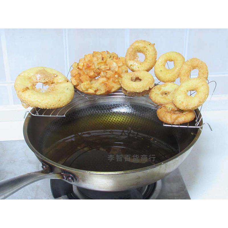 📚 家用无磁不锈钢半圆形油墩子粑粑葱油饼滴油锅面窝油炸架沥油架