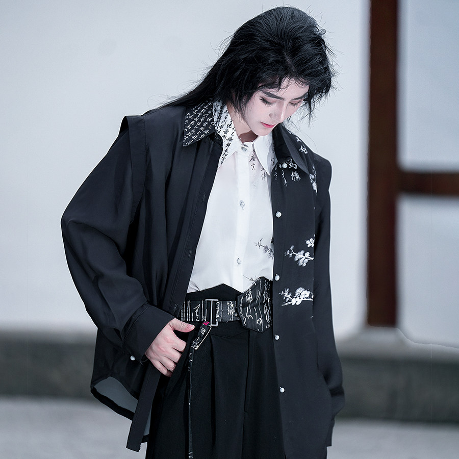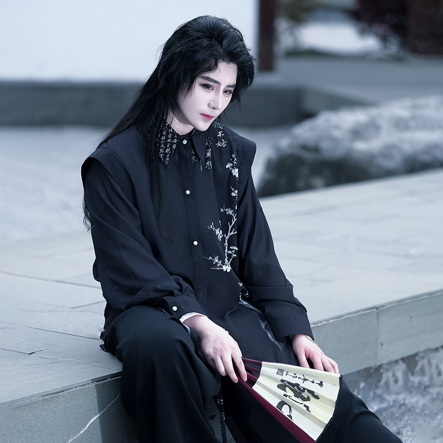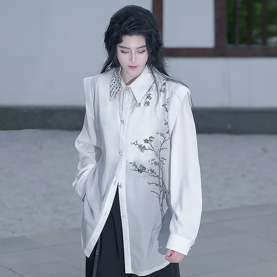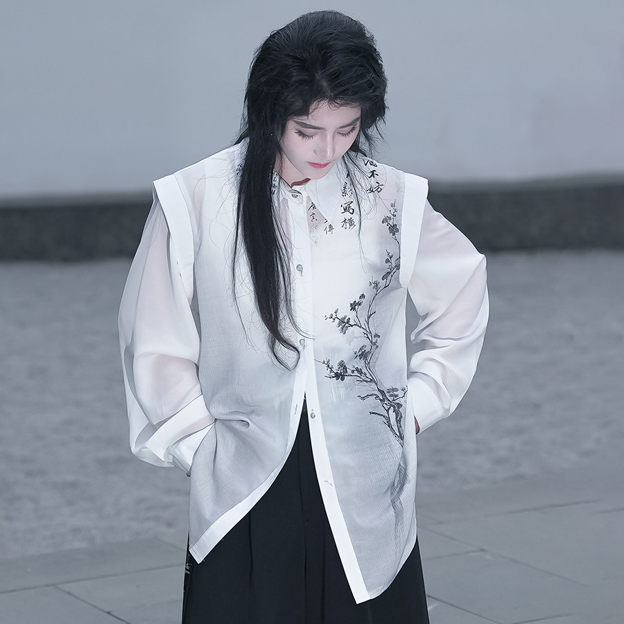 📚 风雅司制原创新中式衬衫墨梅防晒透气雪纺衬衫夏季黑白色