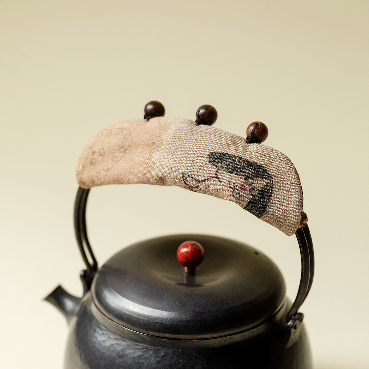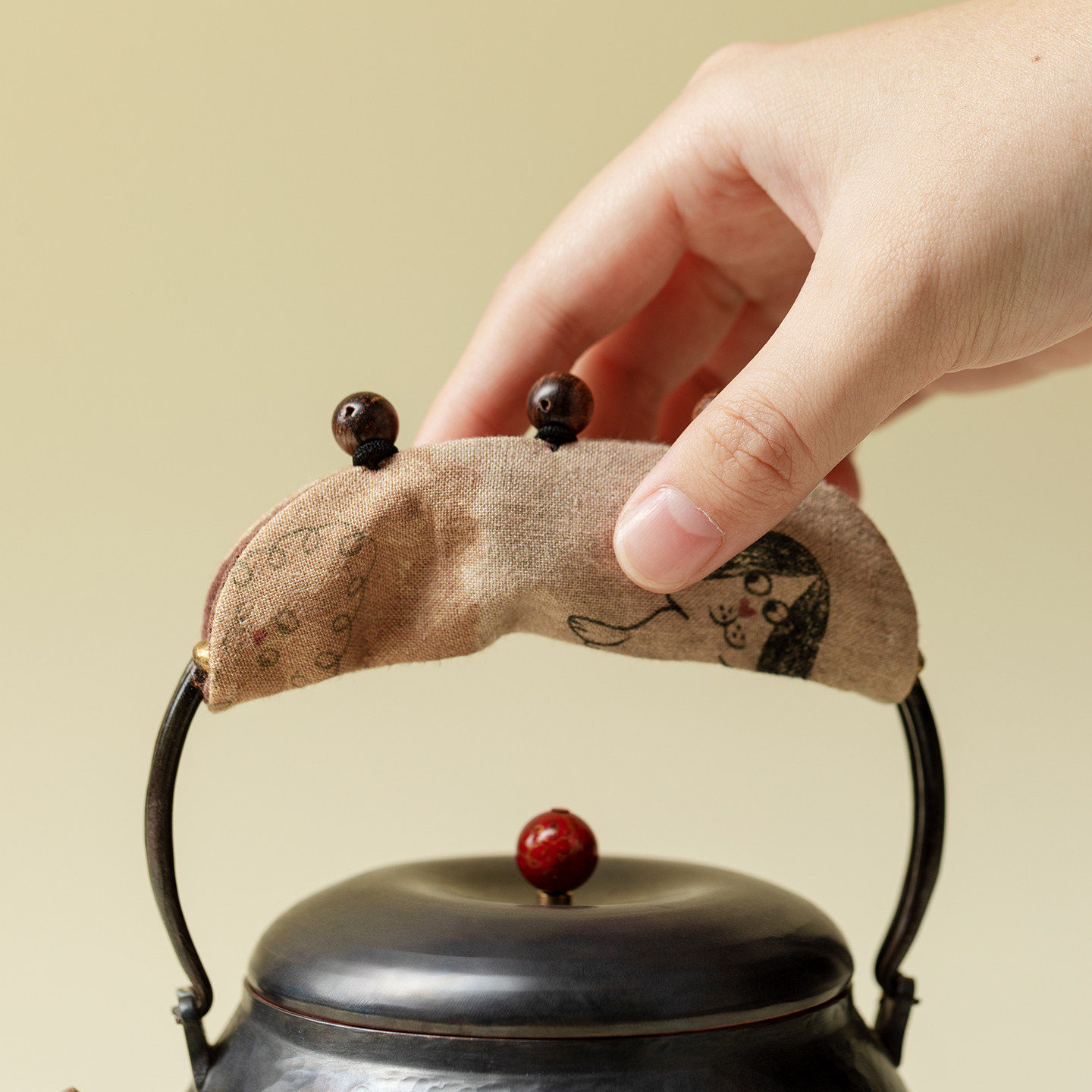 📚 繁野治愈可爱风烧水壶把防烫套日式棉麻提梁煮茶壶隔热套茶道配件