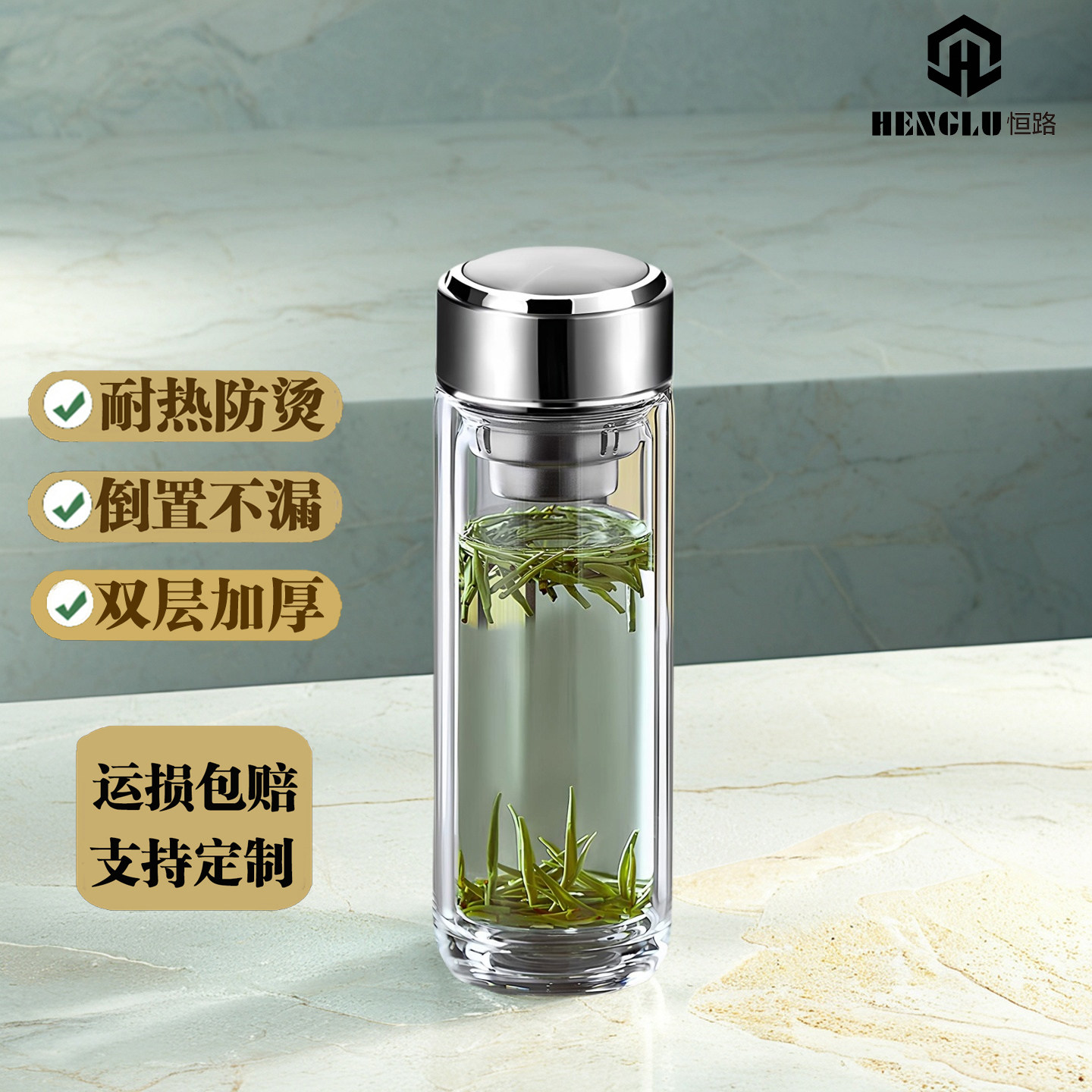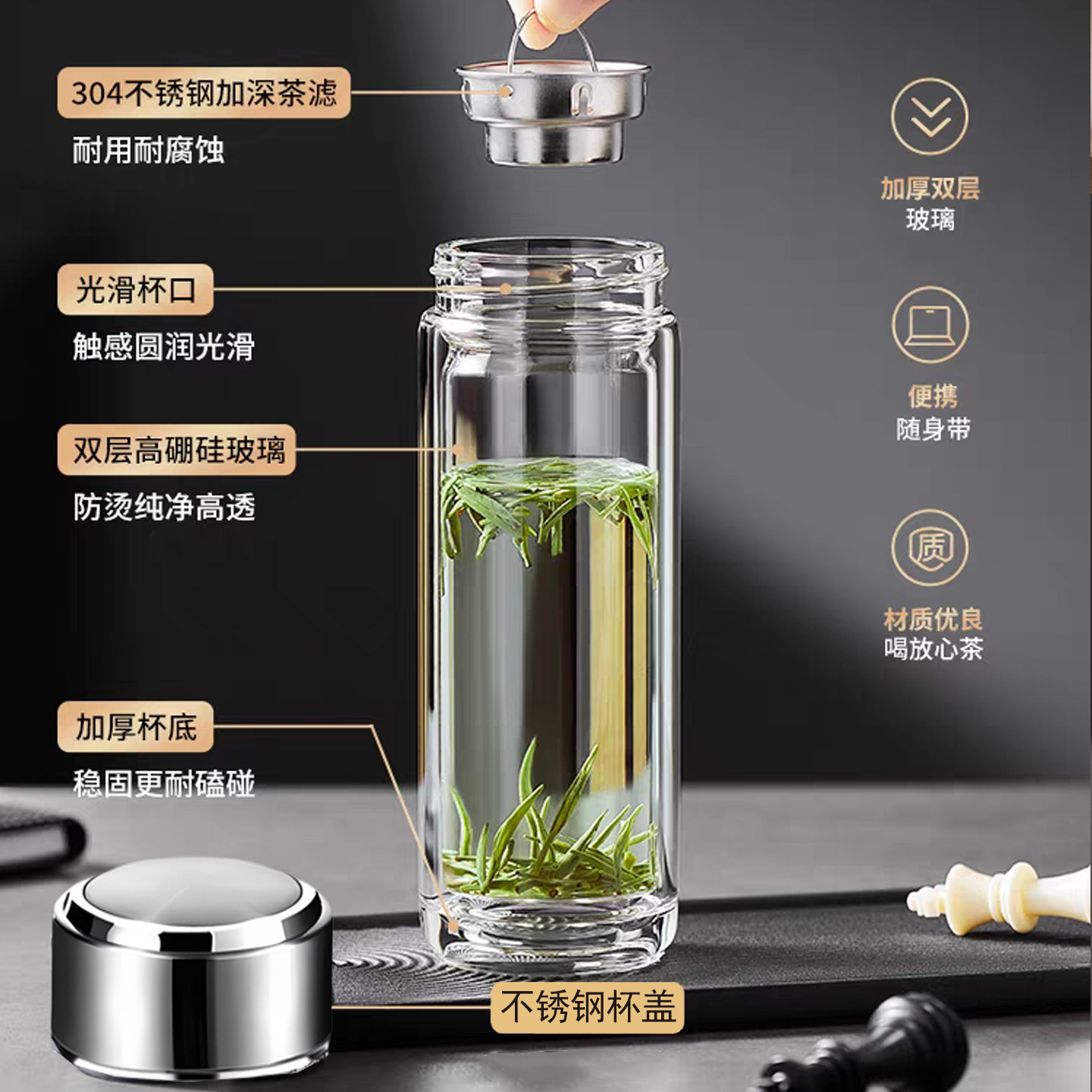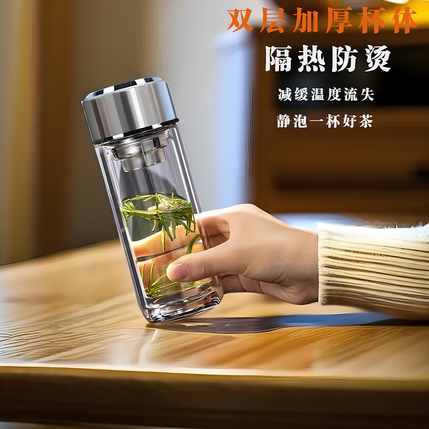 📚 德国品质双层玻璃杯耐热商务车载大容量加厚带盖便携水杯办公茶杯