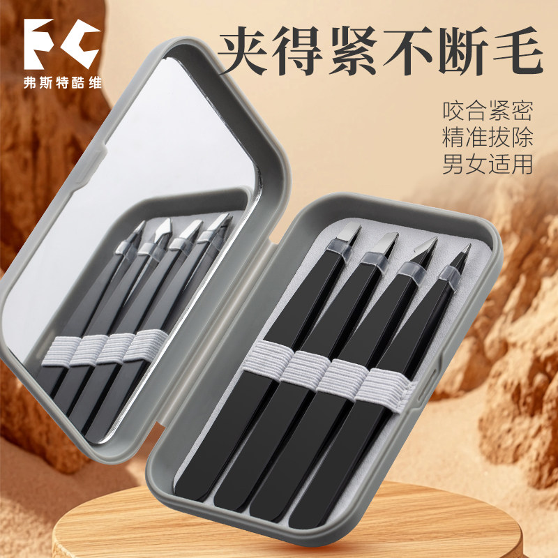 📚 男士高精密胡须夹眉毛夹带镜子拔毛钳夹子镊子拔胡子神器工具套装