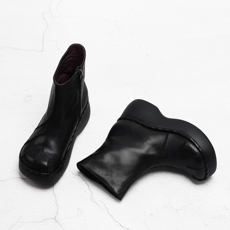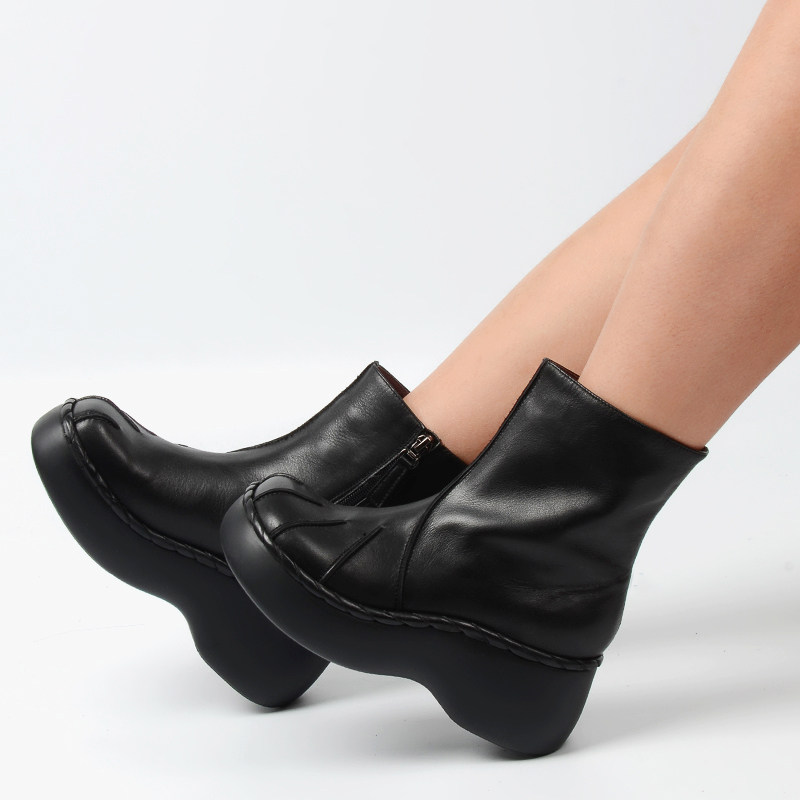 📚 一席之地女鞋2024新款正品女厚底圆头真皮中筒靴休闲舒适松糕短靴