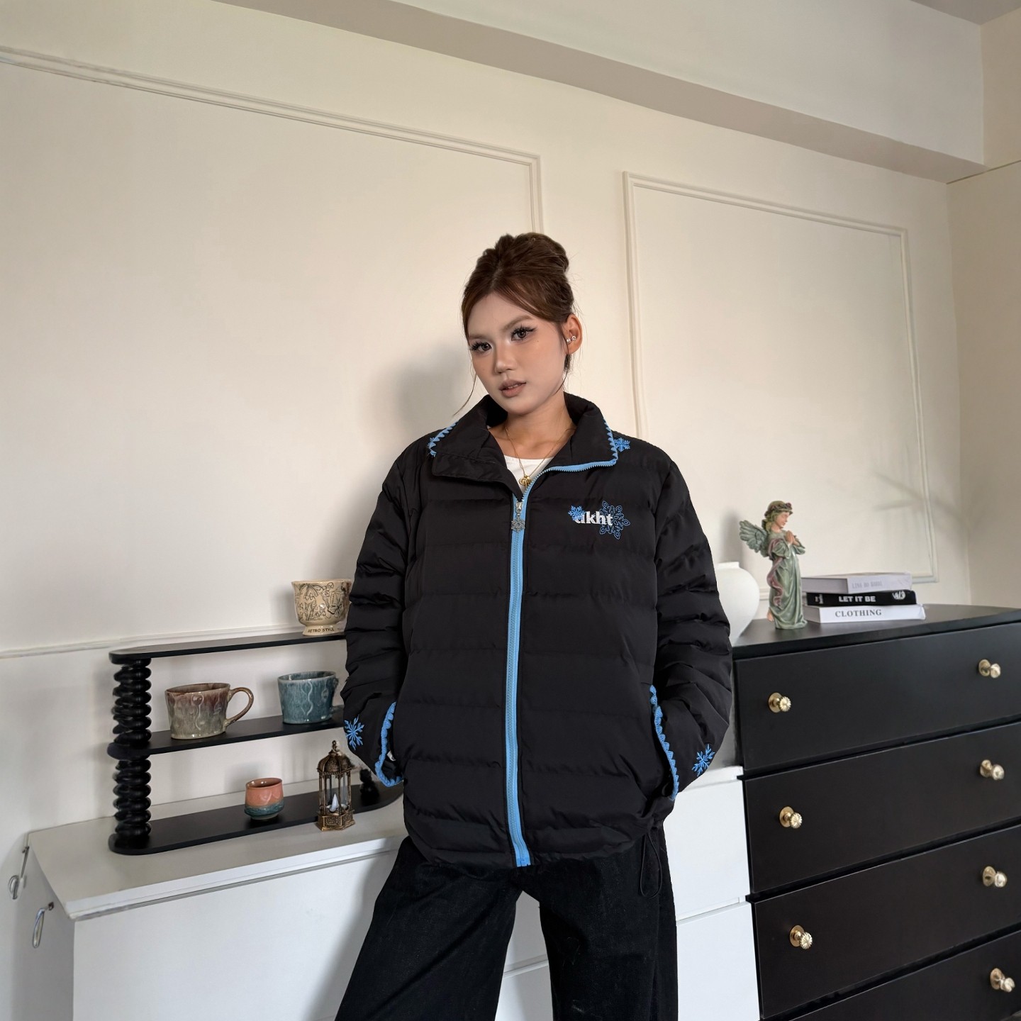 📚 DHSS美式复古贝壳绣雪花排骨棉服男女宽松冬季保暖立领棉衣外套