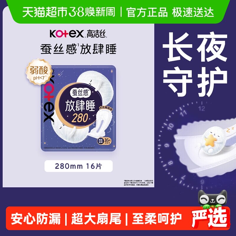📚 高洁丝夜用蚕丝感放肆睡280mm卫生巾姨妈巾16片