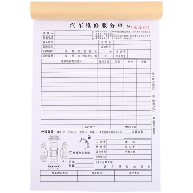 📚 定做汽车接车单二三联修理厂维修服务美容保养施工报价结算清单据
