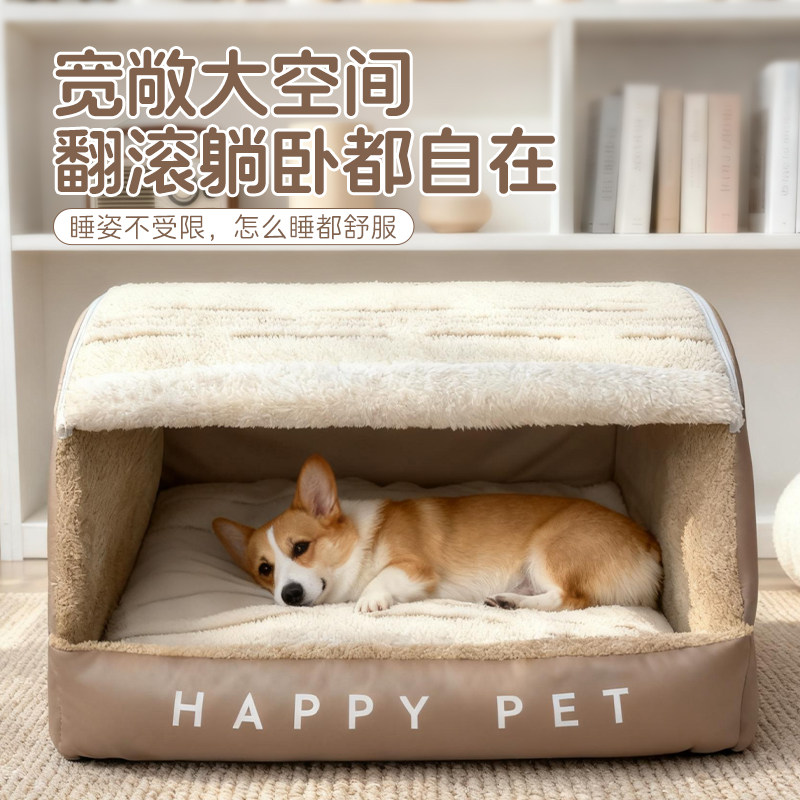 📚 狗窝半封闭式洞穴式狗狗睡窝冬季保暖秋冬室内中型大型犬狗房子