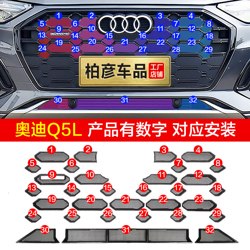 📚 专用21-26款奥迪Q5L防虫网卡扣式A6L车前脸中网栅格水箱改装配件