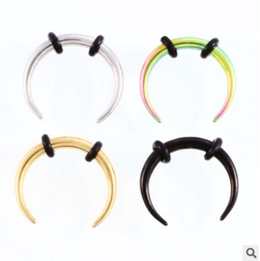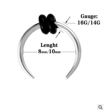 📚 不锈钢防过敏C型牛角鼻环鼻钉固定环 男女赛博朋克饰 品耳扩耳钉