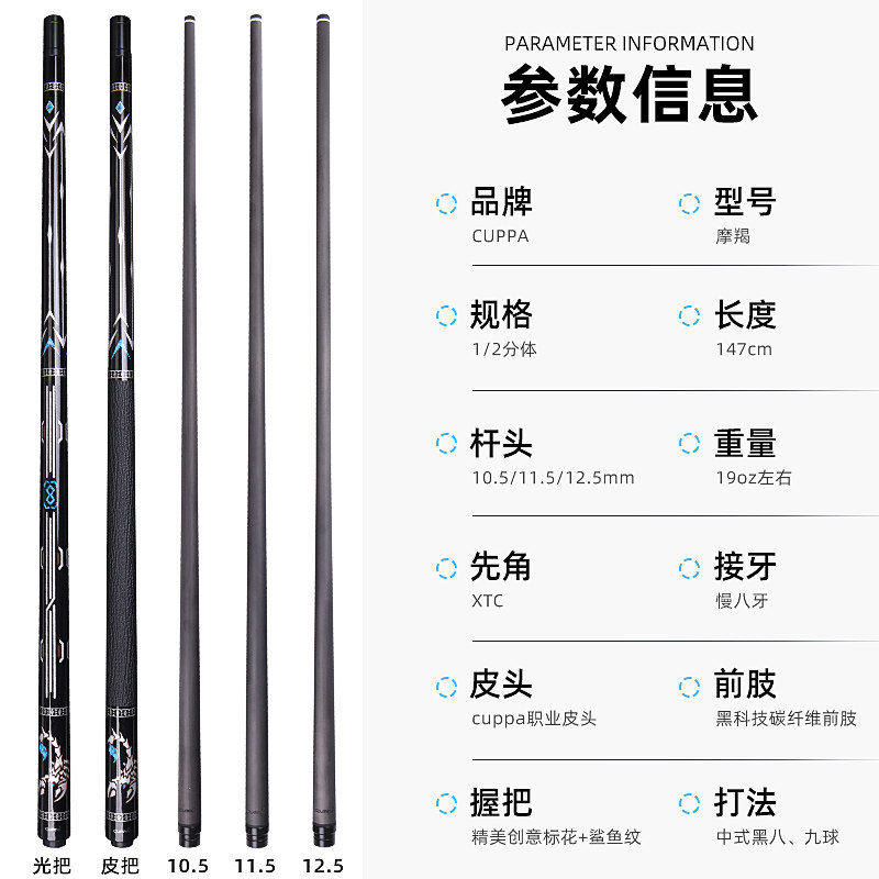 📚 cuppa黑科技碳纤维台球杆中式黑八专用美式九球大头杆桌球杆小头