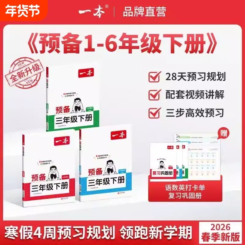 📚 2026版一本预备一二年级三年级四五六年级下册语文数学人教版北师苏教版英语译林版小学寒假衔接同步训练预习书复习课堂笔记练习题