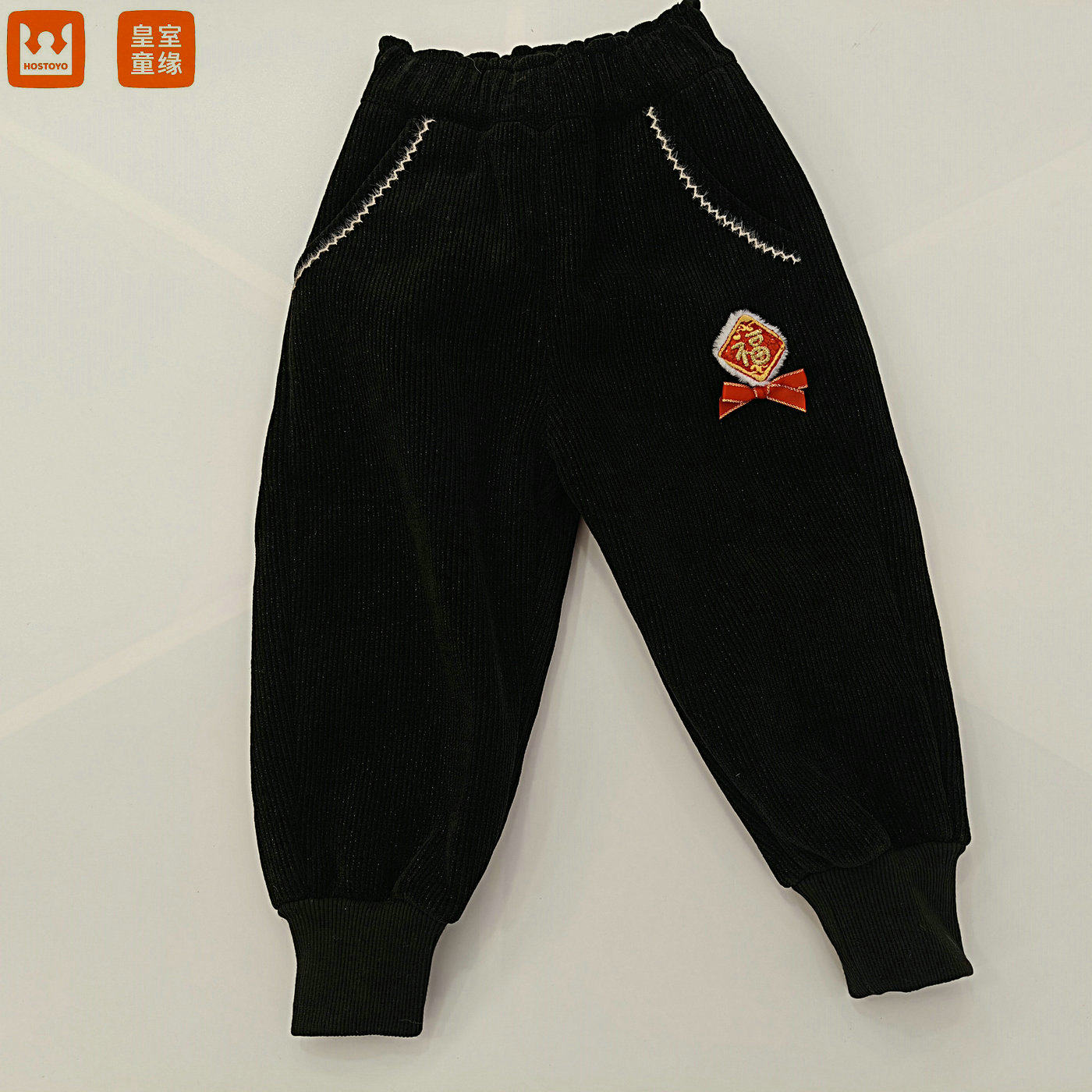 📚 皇室童缘5810358027冬季新年福字加绒小童针织裤90-120码