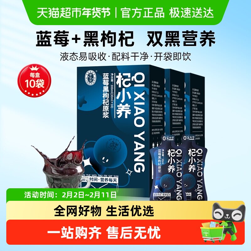 📚 宁安堡蓝莓黑枸杞原浆桑葚原汁锁鲜原果榨汁青海柴达木黑枸杞礼盒