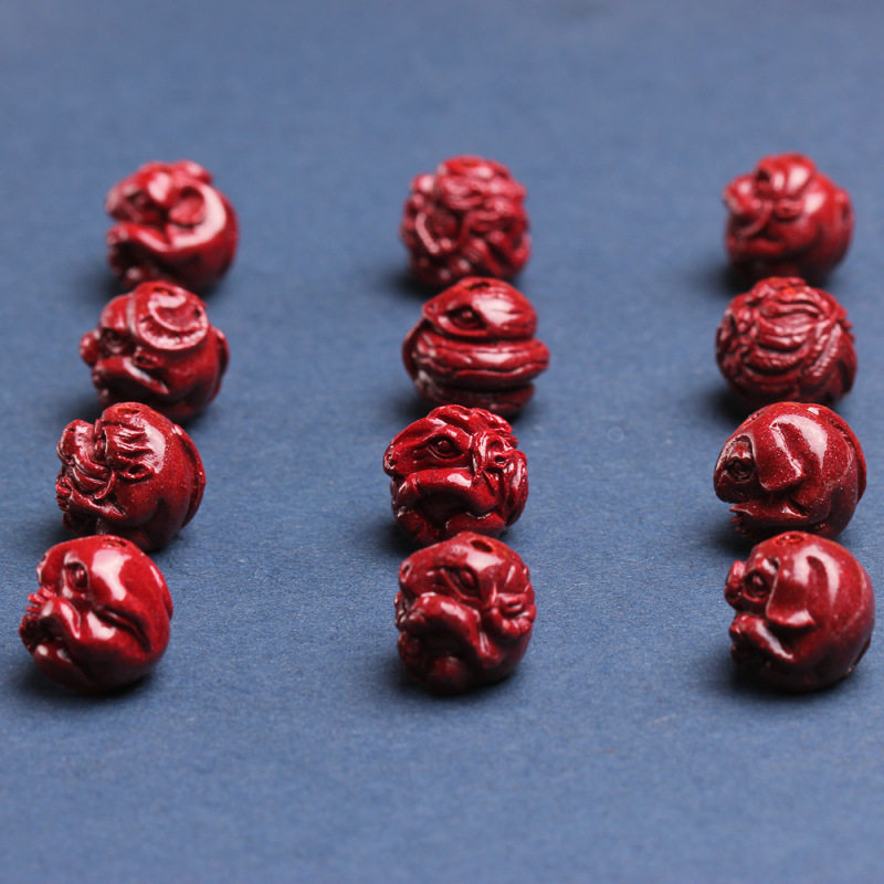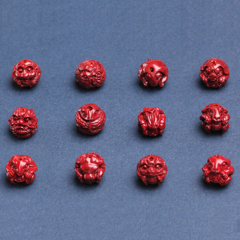 📚 天然朱砂十二生肖配件圆珠隔珠散珠顶珠腰珠佩珠手工 DIY配件饰品