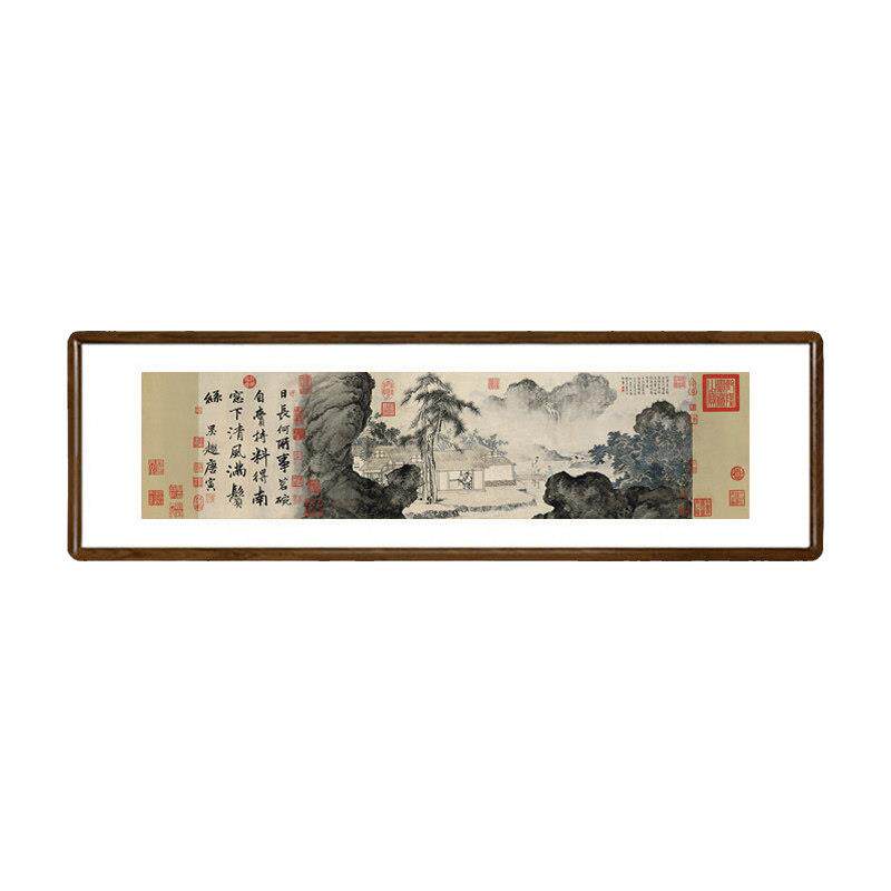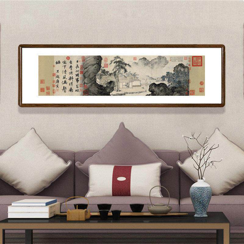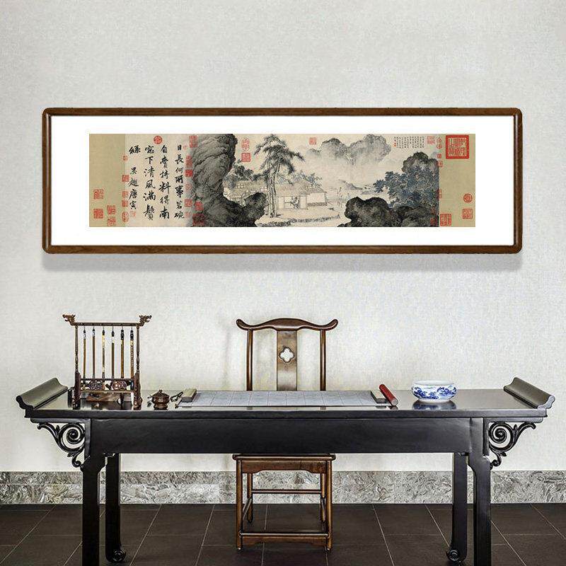 📚 国画山水画名家字画客厅背景墙装饰画书房茶室横版挂画唐寅事茗图