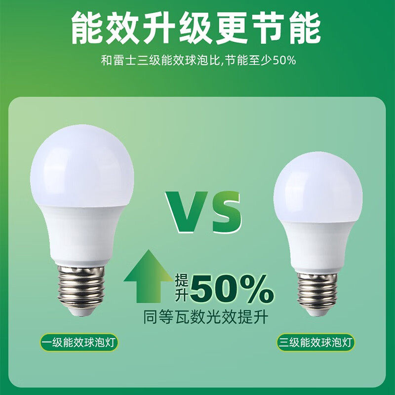 📚 雷士照明led灯泡一级能效e27螺旋口光源超亮节能灯护眼灯三色变光