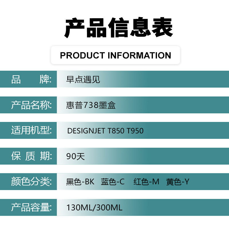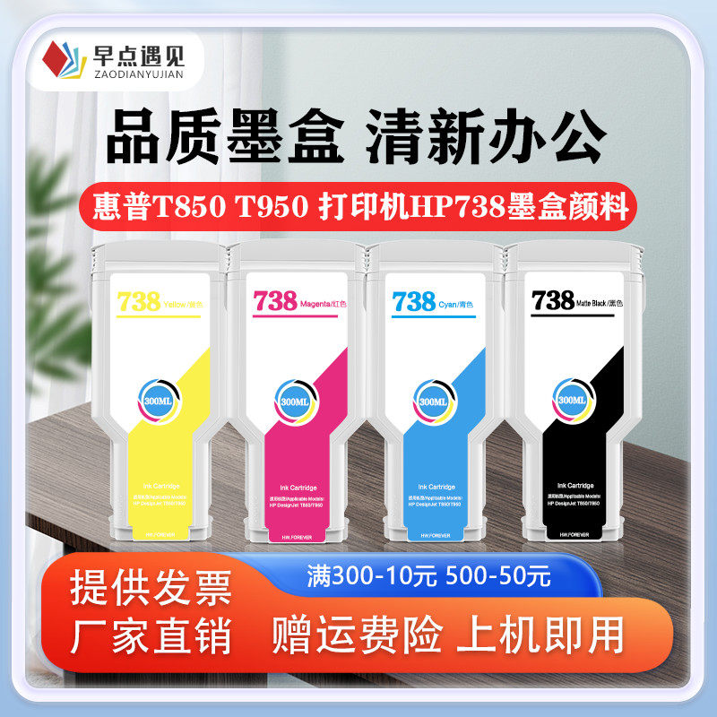 📚 早点遇见适用于惠普/HP T850 T950墨盒打印机 hp738号 738B墨水 墨盒 绘图仪 非原装