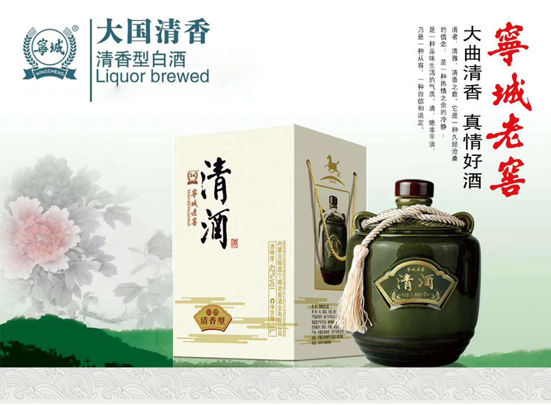 📚 宁城老窖清酒淡雅绵柔清香型商务白酒42度1L瓷坛坛礼盒整箱装包邮
