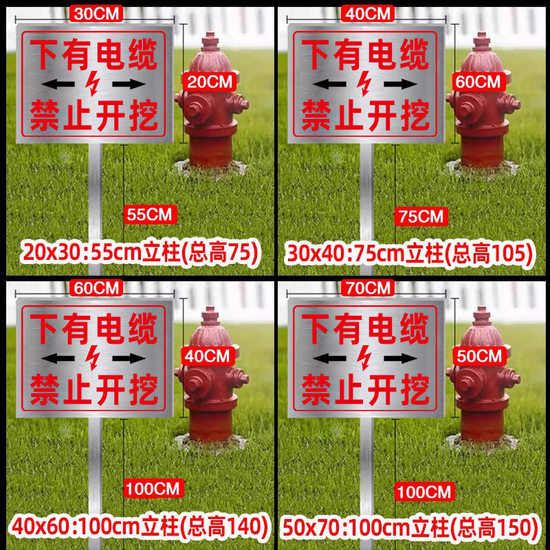 📚 下有电缆严禁开挖警示牌地下有高压电缆标识桩标志牌电缆走向标识牌警示牌不锈钢铝板高压电缆电力警告标志桩