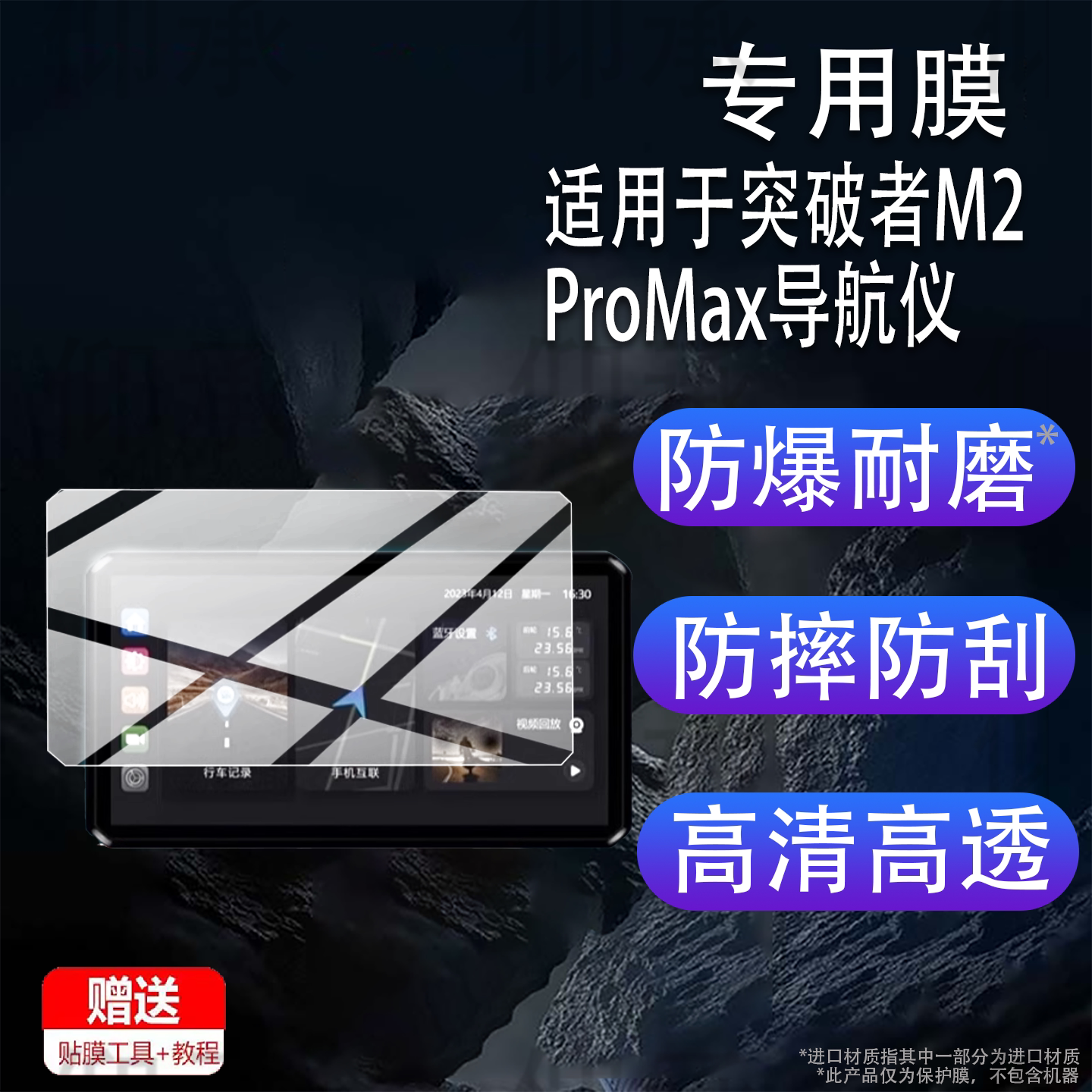 📚 适用突破者M2ProMax导航仪贴膜M12pro/M2max钢化膜M3/M2摩托车行车记录仪保护膜carplay智能车机屏幕膜