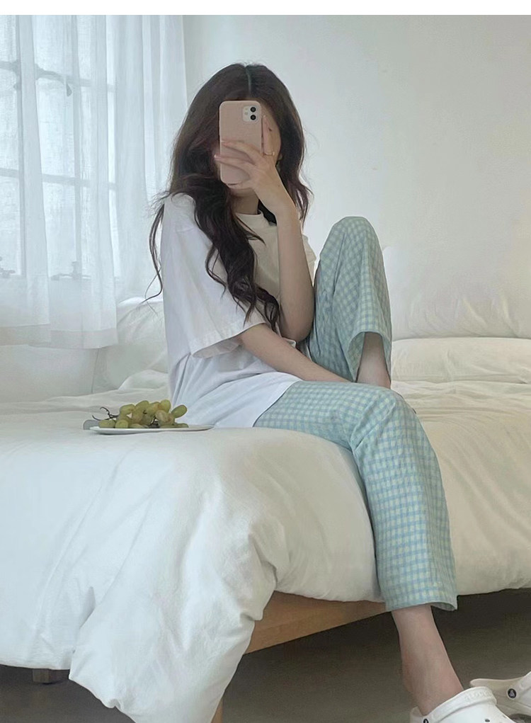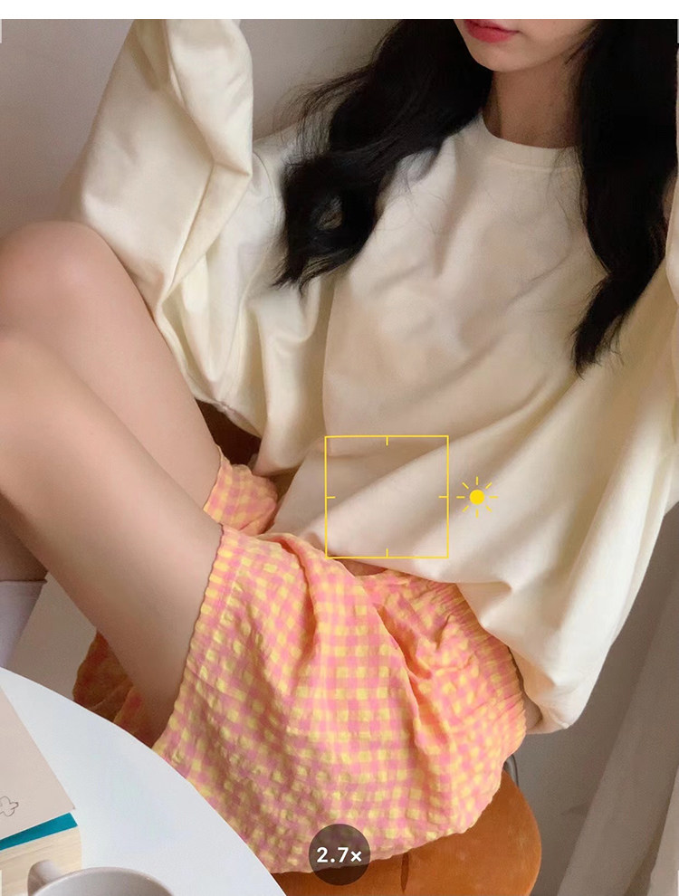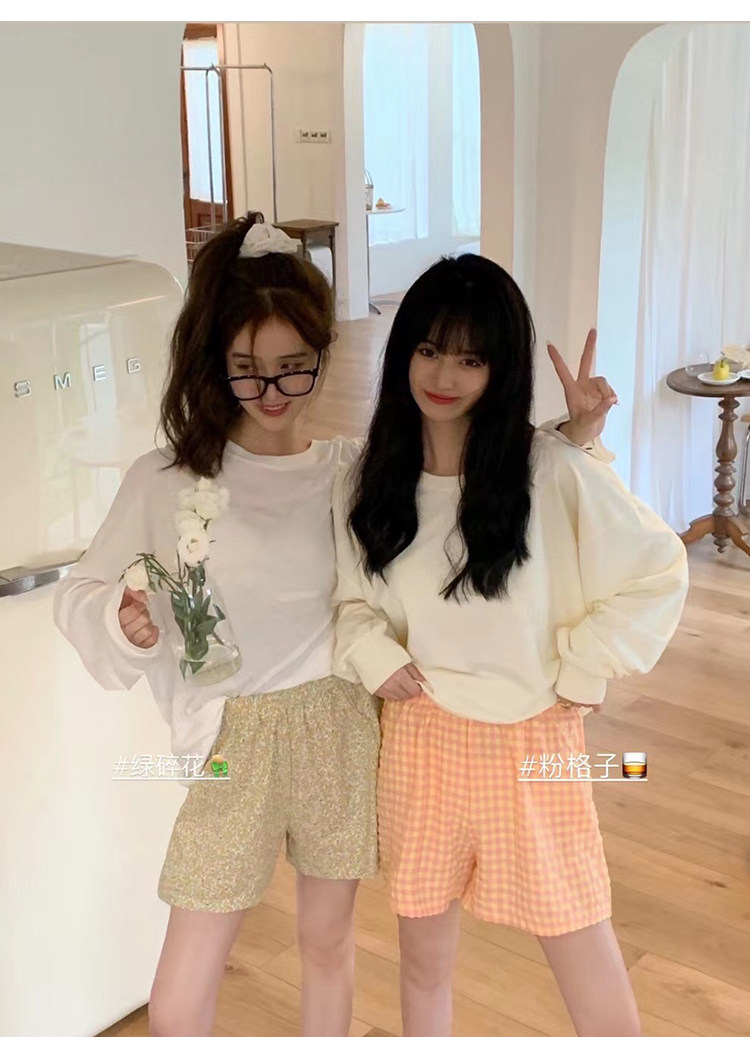 📚 遛弯裤ins薄款宽松格子短裤睡裤松紧腰舒适透气学生家居裤女夏
