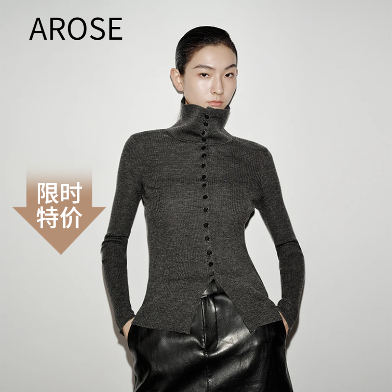 📚 艾诺丝尚忆2025秋新款单排扣立领长袖绵羊毛针织衫女毛衫804111