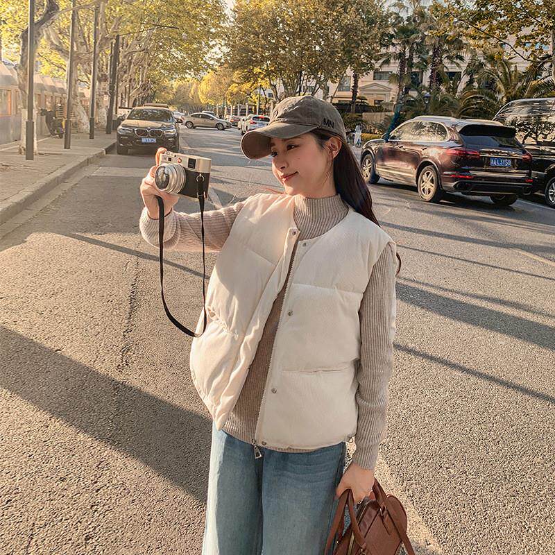 📚 无领羽绒棉短款马甲女2025秋冬新款宽松时尚高级感面包服保暖棉服