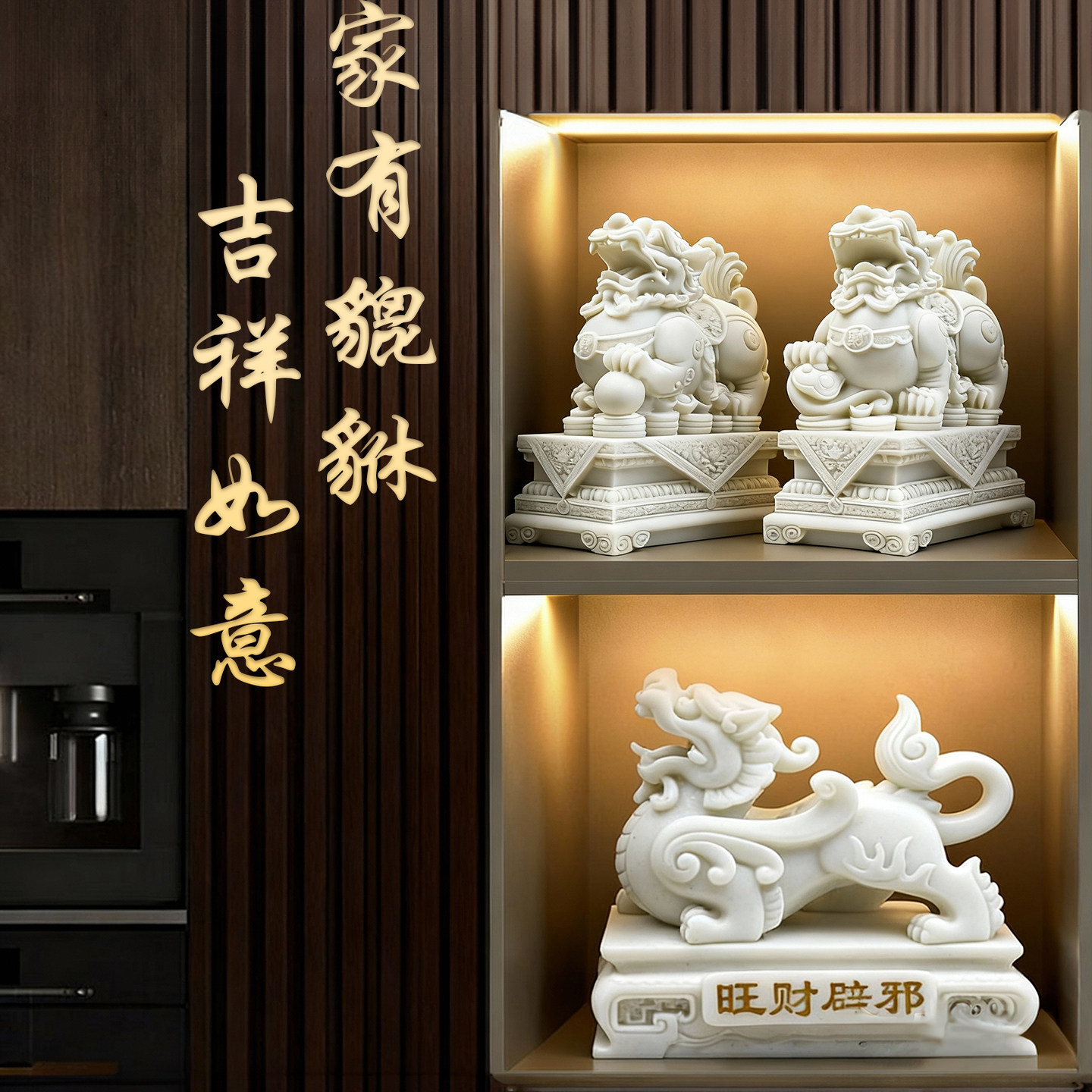📚 貔貅招财镇宅摆件汉白玉石雕一对汽车吸旺财客厅门口家里公母皮丘