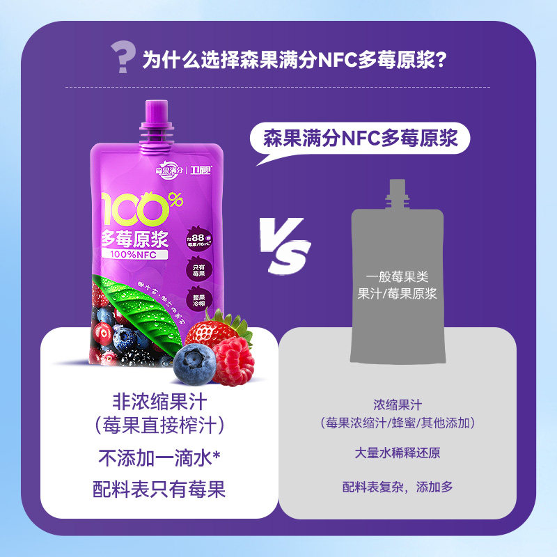📚 卫视/森果满分100%NFC多莓原浆花青素非浓缩还原90ml*20袋