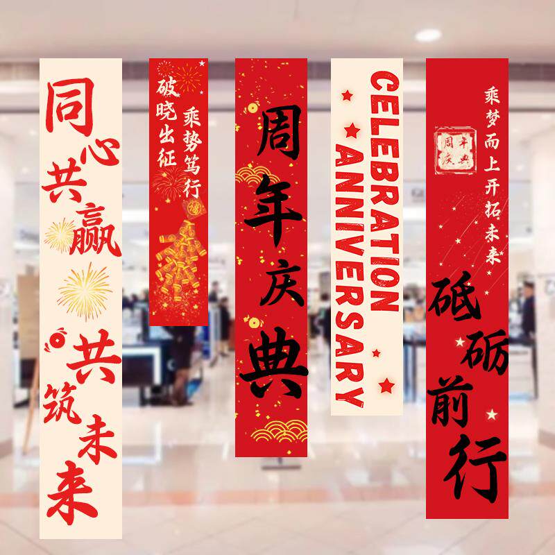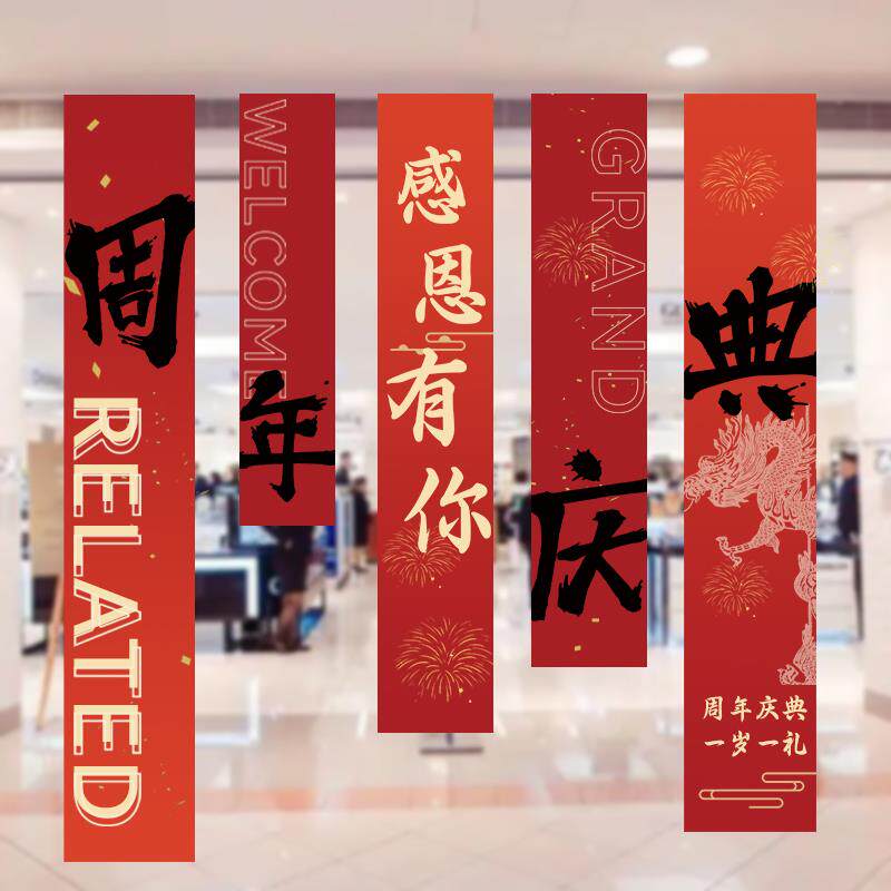 📚 周年庆活动装饰品公司庆典店铺促销场景氛围布置挂布条幅吊旗背景