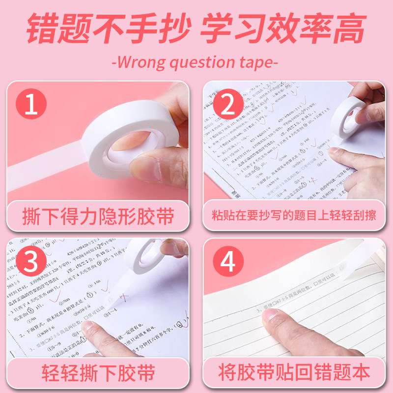 📚 得力隐形胶带错题胶布易撕贴复印改错答案可复制学霸学生用改错神器错题贴纸胶带透明胶带学生错题胶带