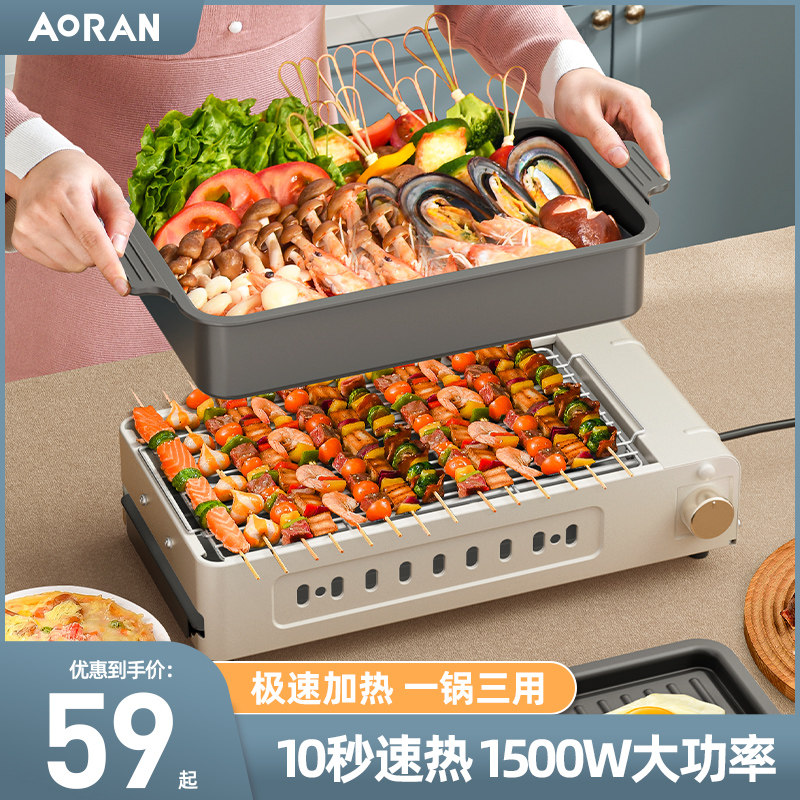 📚 电烧烤炉家用电烤炉无烟烧烤x架烤盘烤串机烤肉涮烤炉子火锅一体