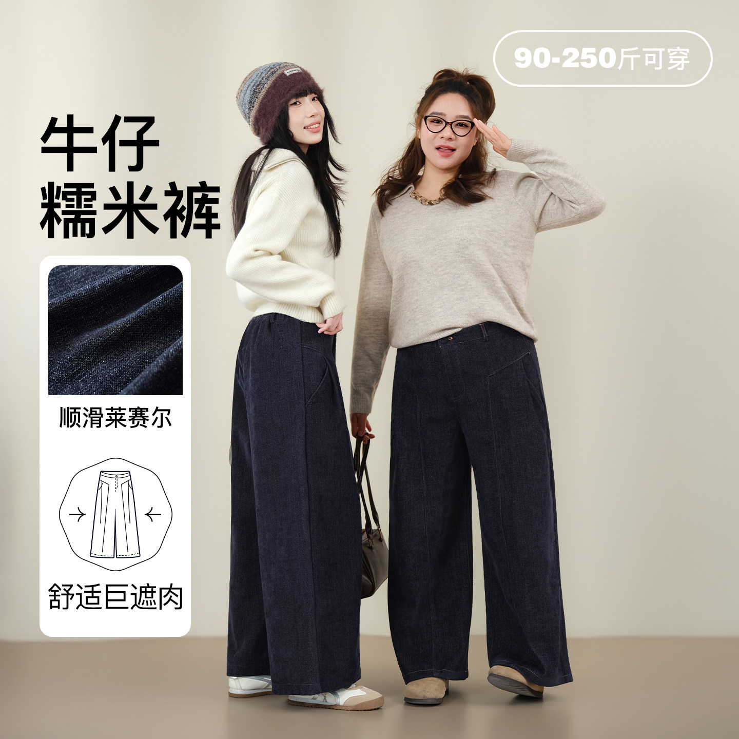 📚 YUZI鱼子牛仔糯米裤大码阔腿莱赛尔顺滑宽松遮肉后松紧腰微胖四季