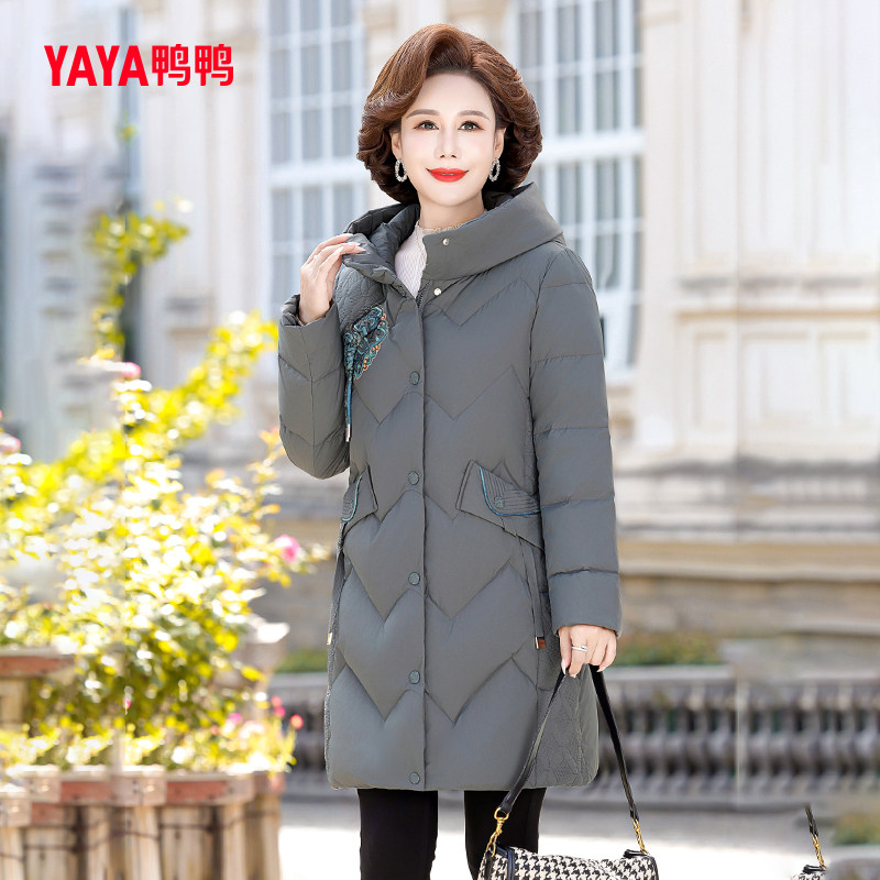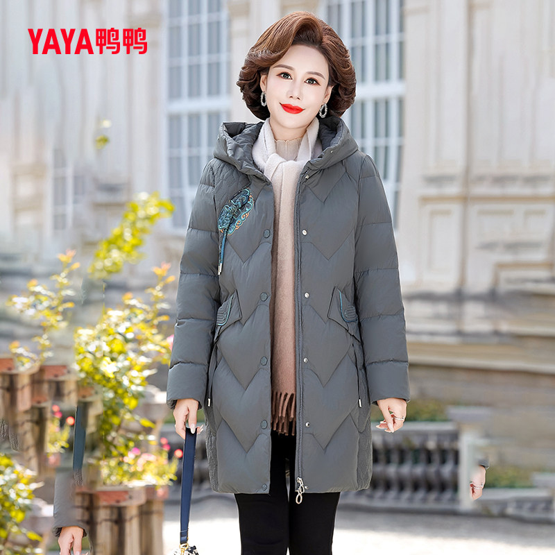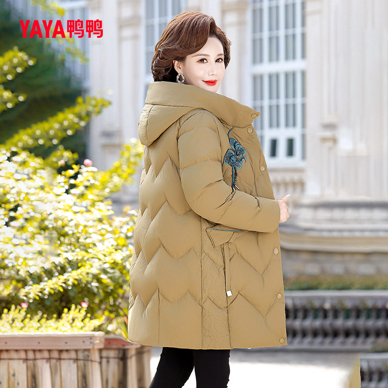 📚 鸭鸭妈妈装羽绒服女2025冬季新品中老年显瘦民族风连帽中长款外套