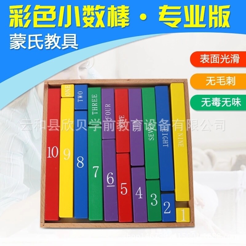 📚 正品蒙氏彩色小数棒 数数棒 幼儿园玩具 数学教具1-10英文对应板