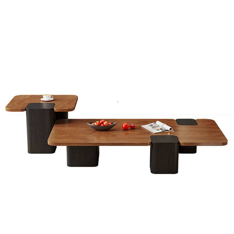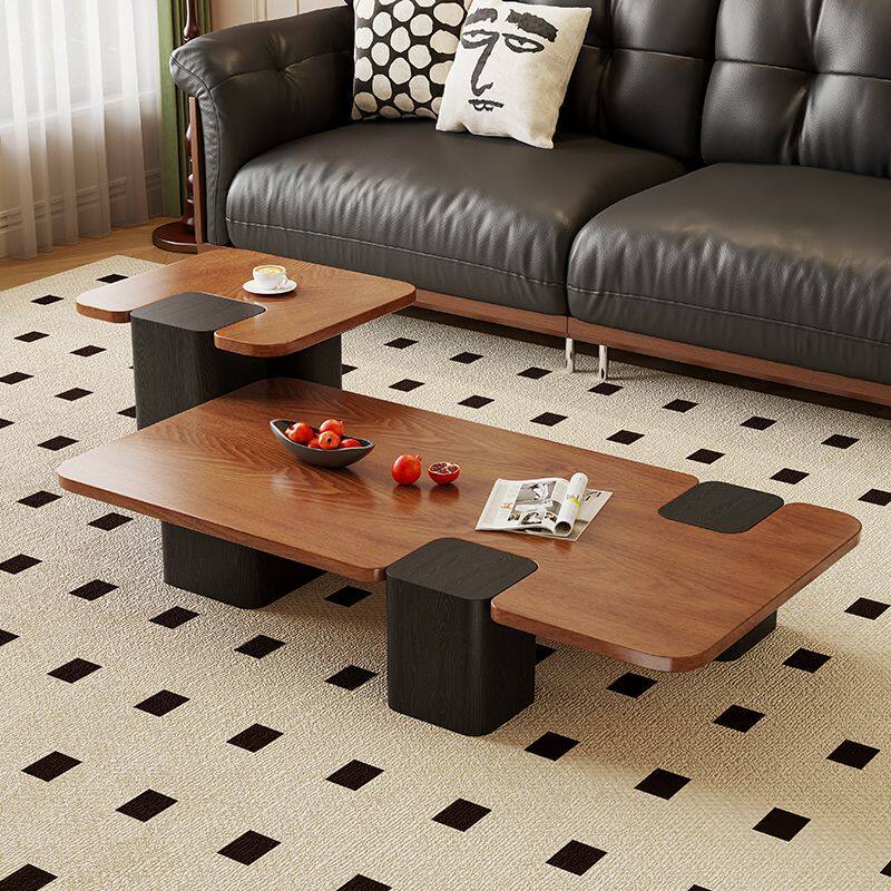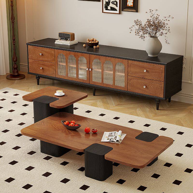 📚 中古风实木茶几复古风圆形组合客厅家用储物柜高级感落地电视机柜