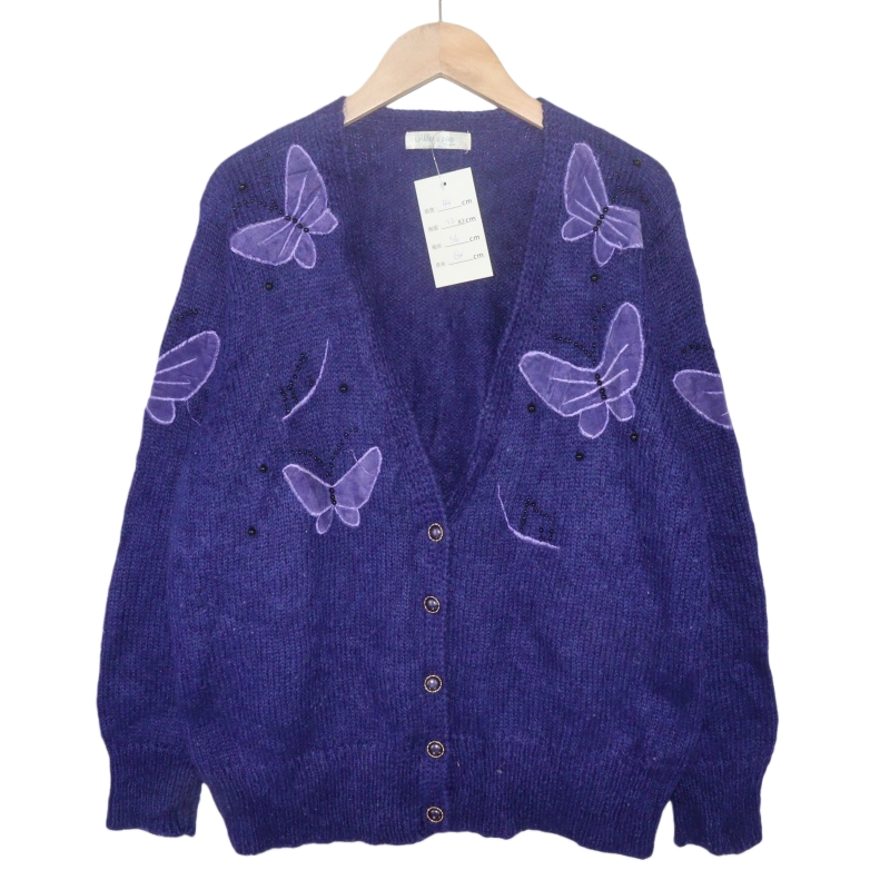 📚 古着vintage孤品日系马海毛复古纯色钩花森系百搭毛衣A83