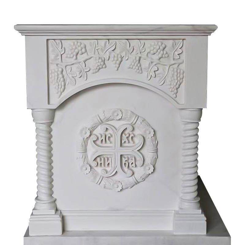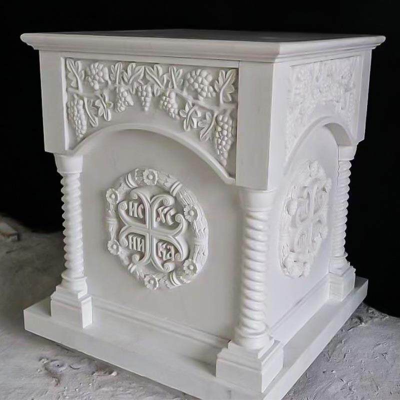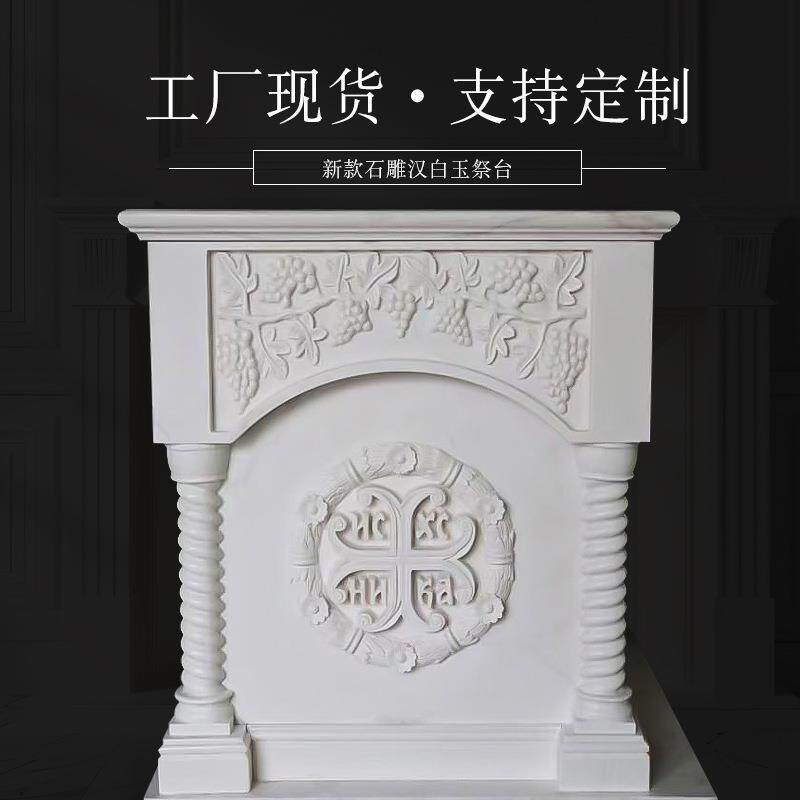 📚 台汉白祭读经台大理石教玉堂圣餐物圣桌晚餐浮雕祭台石桌源头工厂