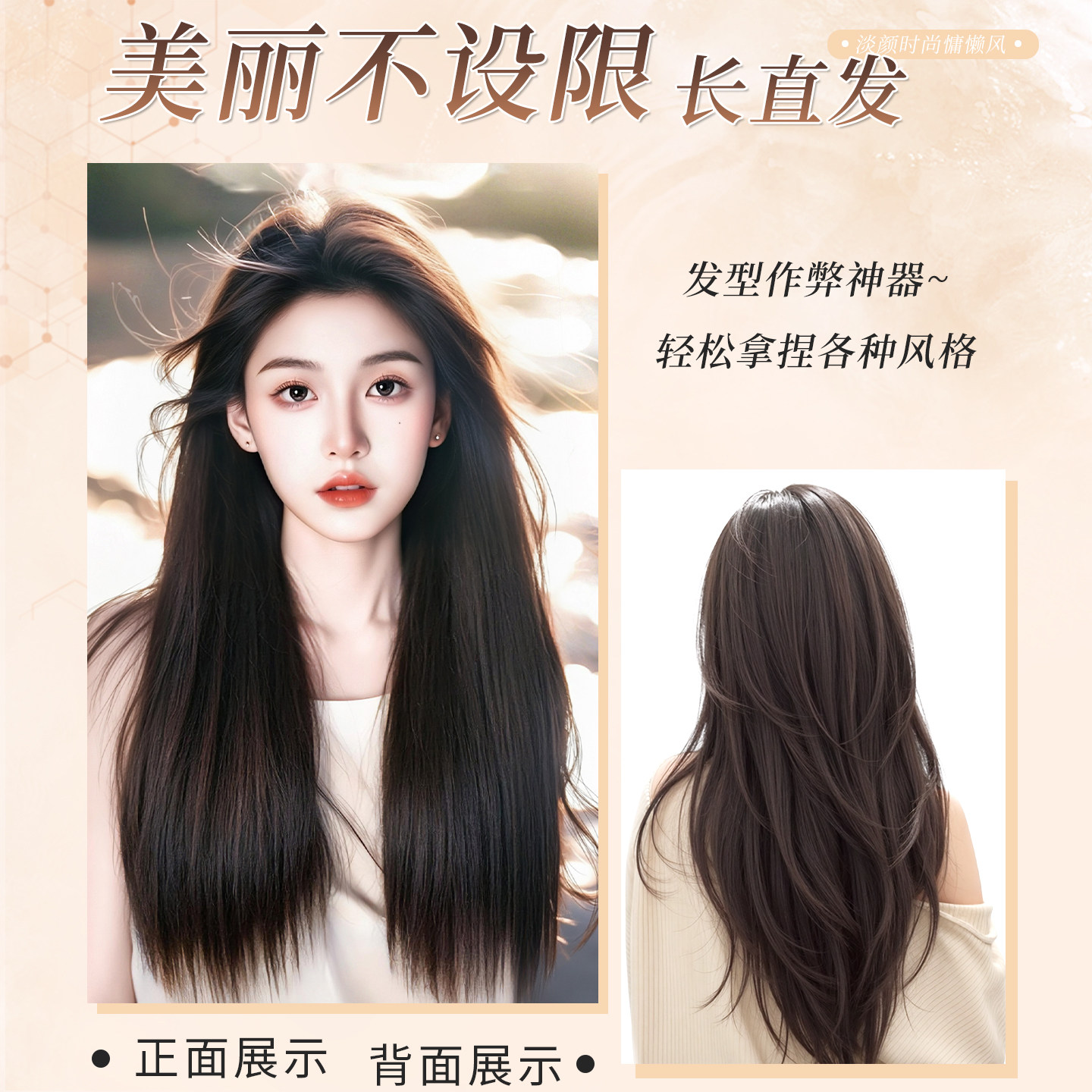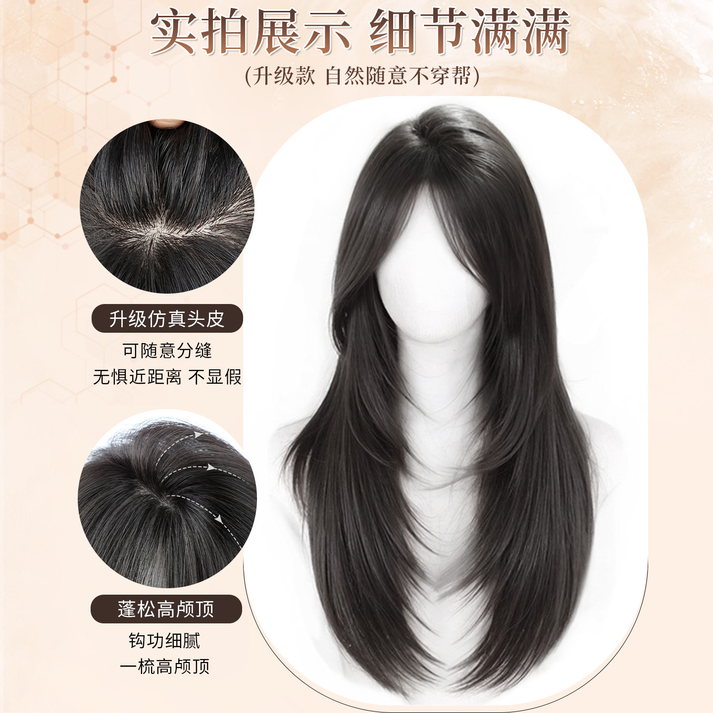 📚 假发全头套女蓬松高颅顶隐形无痕仿真发韩系层次长直发整顶假发套