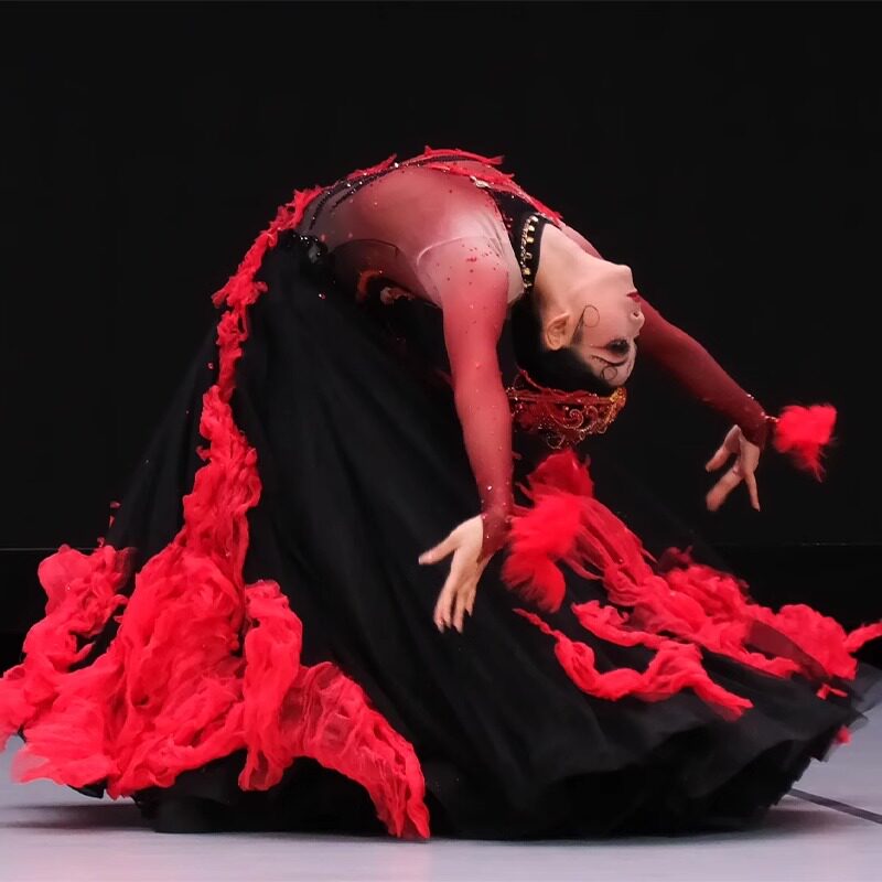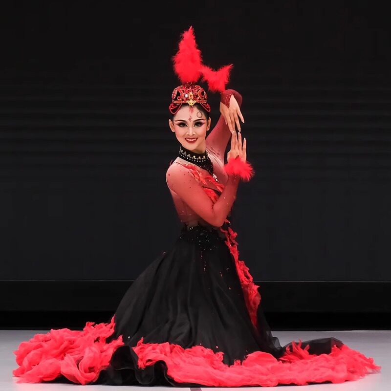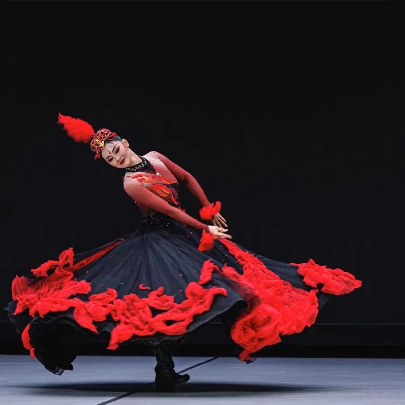 📚 哈萨克族舞蹈剧目服焰少数民族舞蹈演出服维族舞蹈服艺考大摆裙女