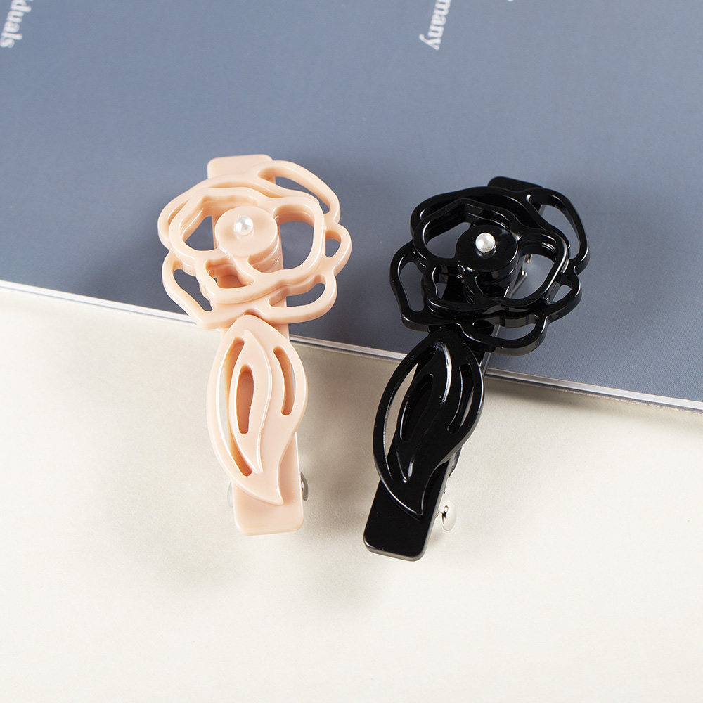 📚 镂空玫瑰花小号发夹女后脑勺一字夹半扎发发夹侧边夹高端夹子发饰
